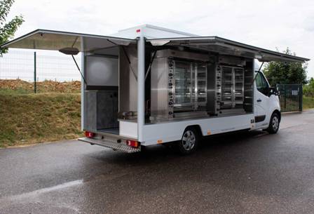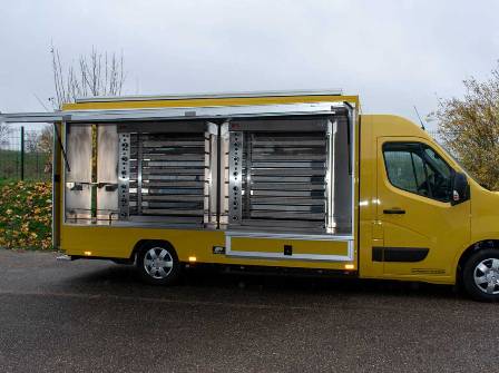 Pour être fonctionnel, il vous faut votre principal outil de travail : une rôtisserie mobile professionnelle. Comptez entre 50 000 et 100 000 euros pour un camion clé en main d’entrée à milieu de gamme. Prévoyez entre 100 000 et 175 000 euros pour du sur-mesure haut de gamme.